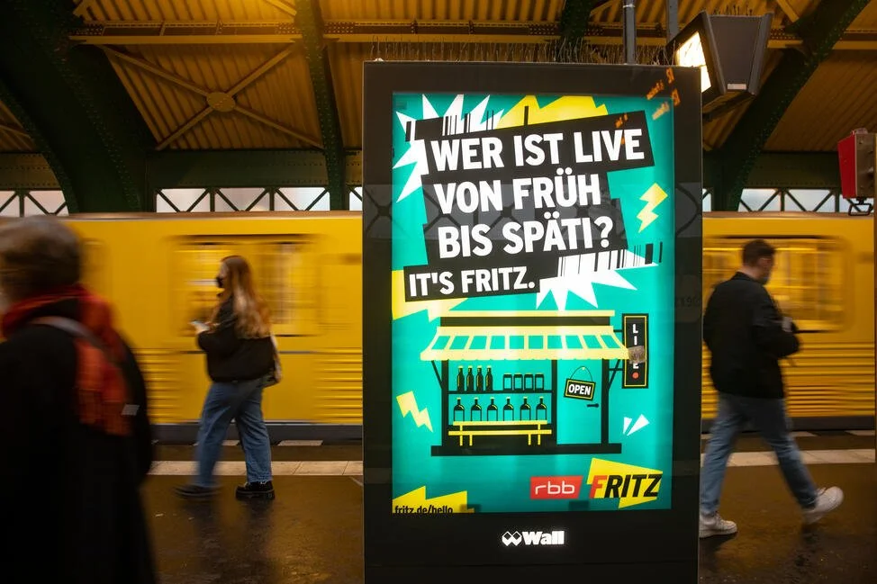 One of my projects at Granny, RBB Fritz image campaign that showcased the platform's unique style and humour. To appeal to the target audience of 18-25 year olds in Berlin and Brandenburg, we created a design that combined bold, bright colours with the platform's existing branding. The aim was to make Fritz a trendy, modern source of information that would resonate with young adults, introducing Fritz as multichannel media brand.